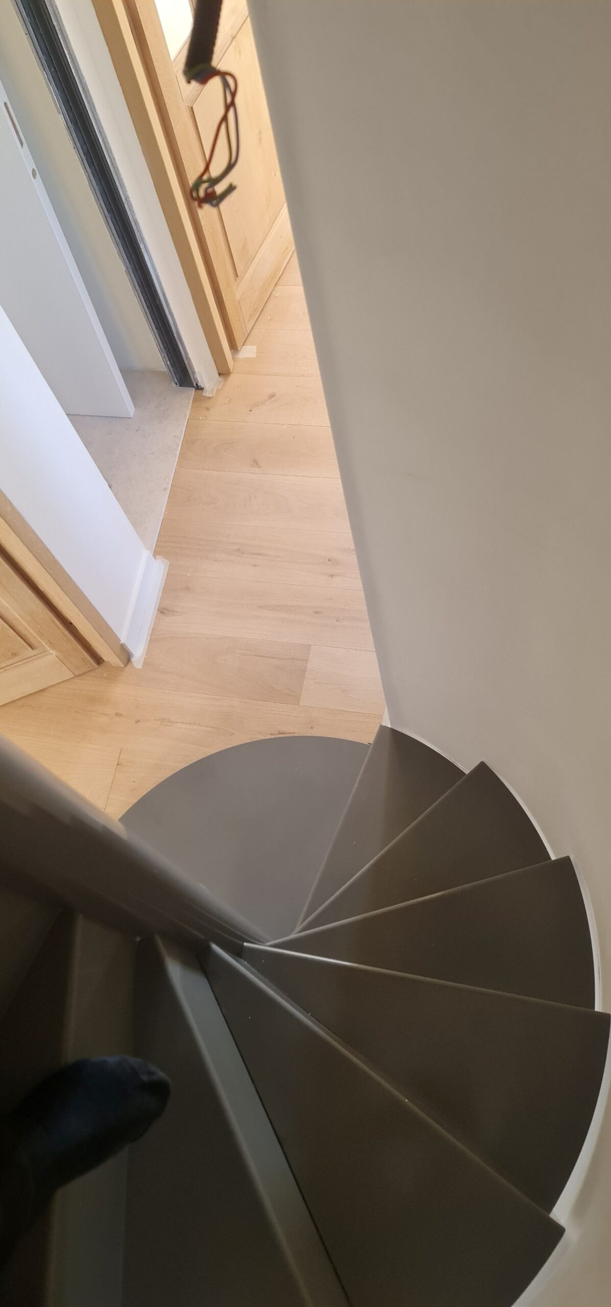 - Il y a 2 photos en cours de montage de l'escalier acier helicoidal