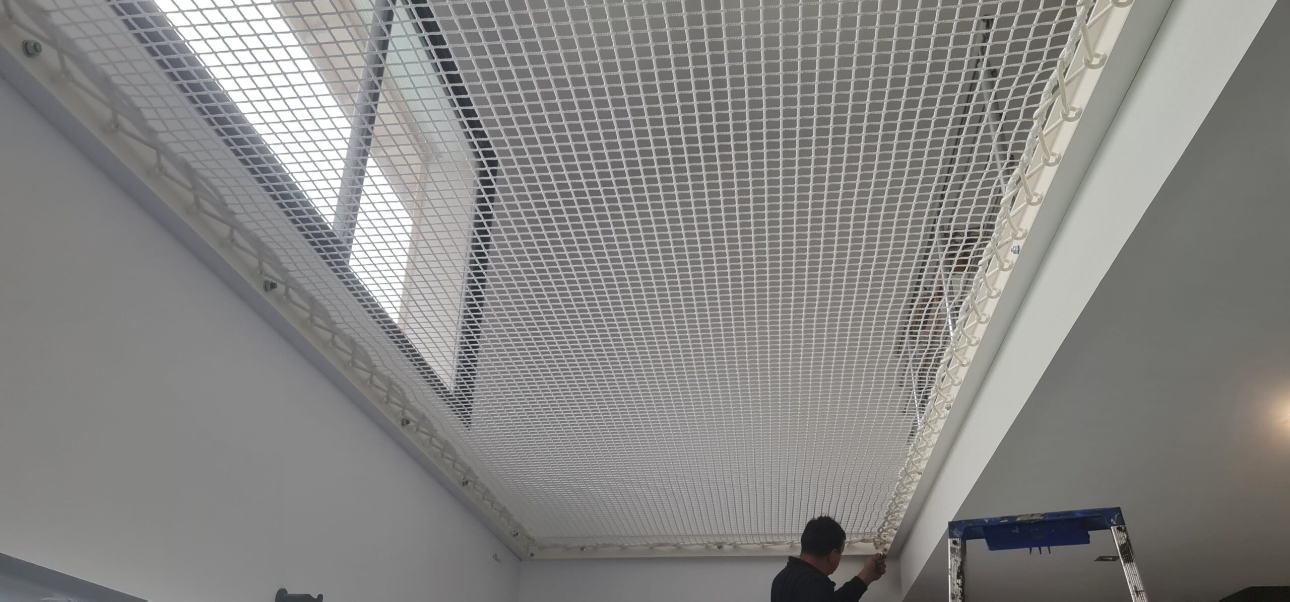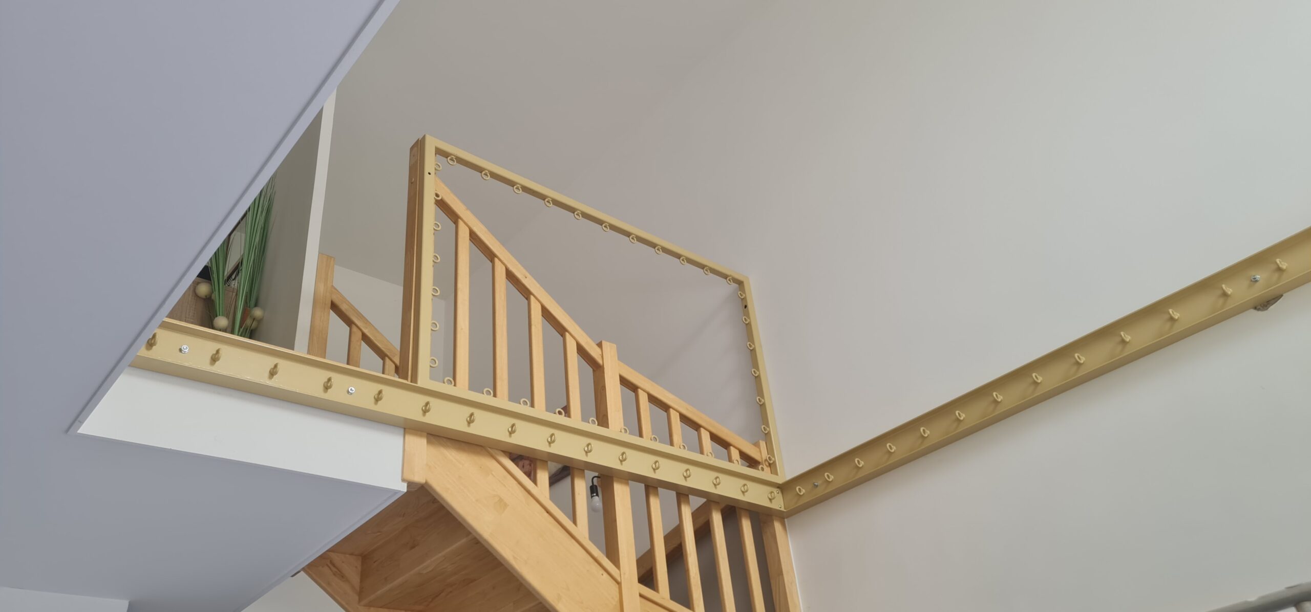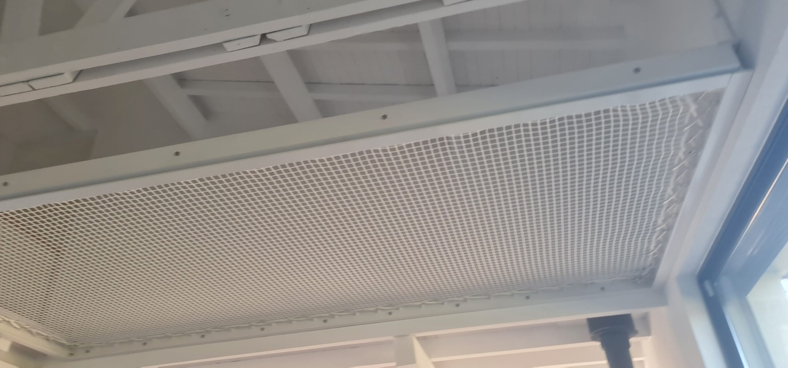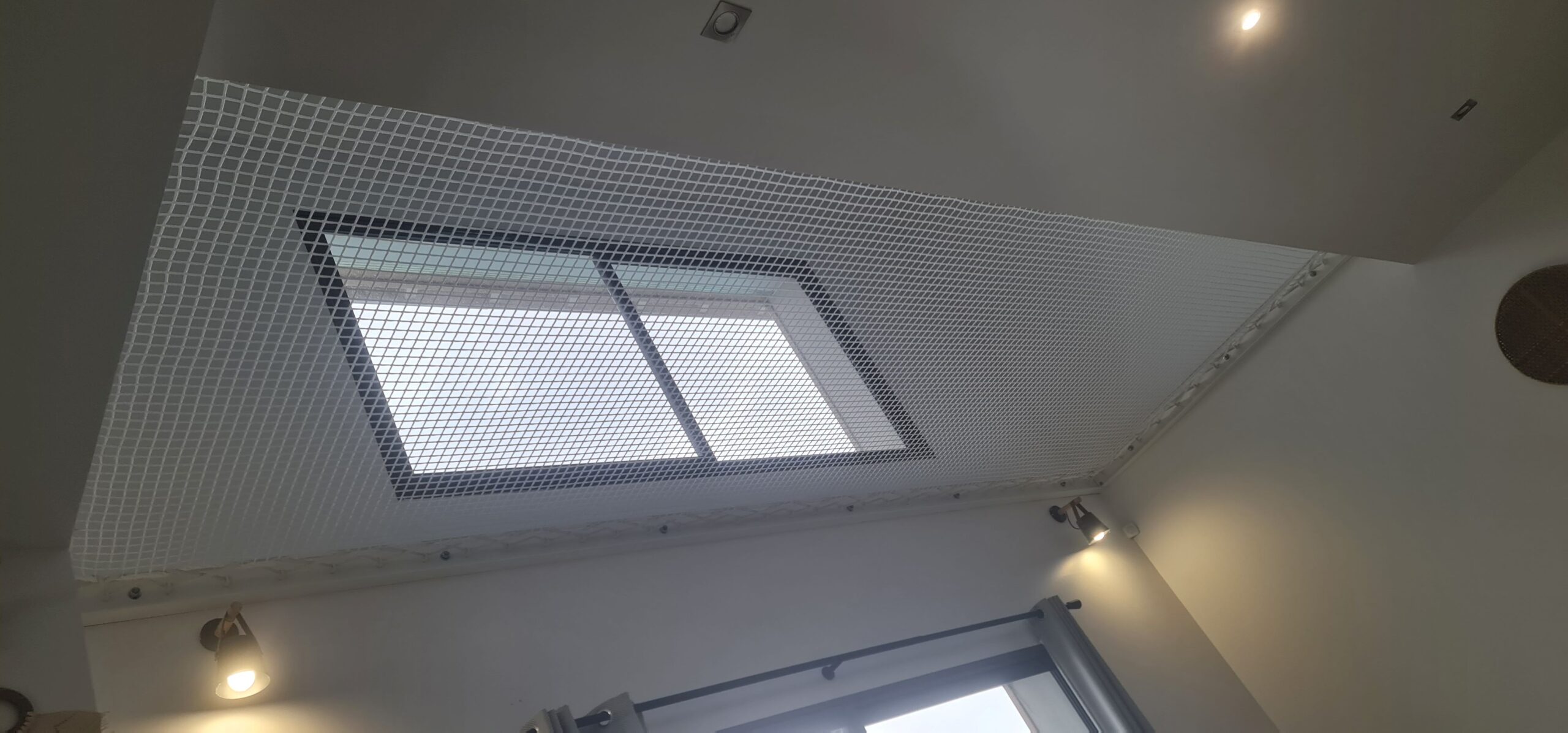 Ce filet tendu beige d'appartement a été posé en Janvier 2025 dans le beaujolais à coté de Lyon, comprenant :