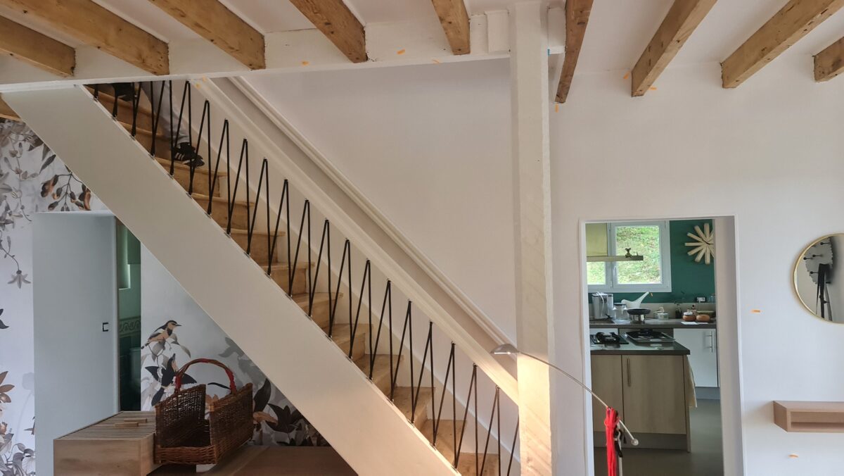 - le garde-corps était existant. Nous avons rempli le garde-corps entre la rambarde et le limon
