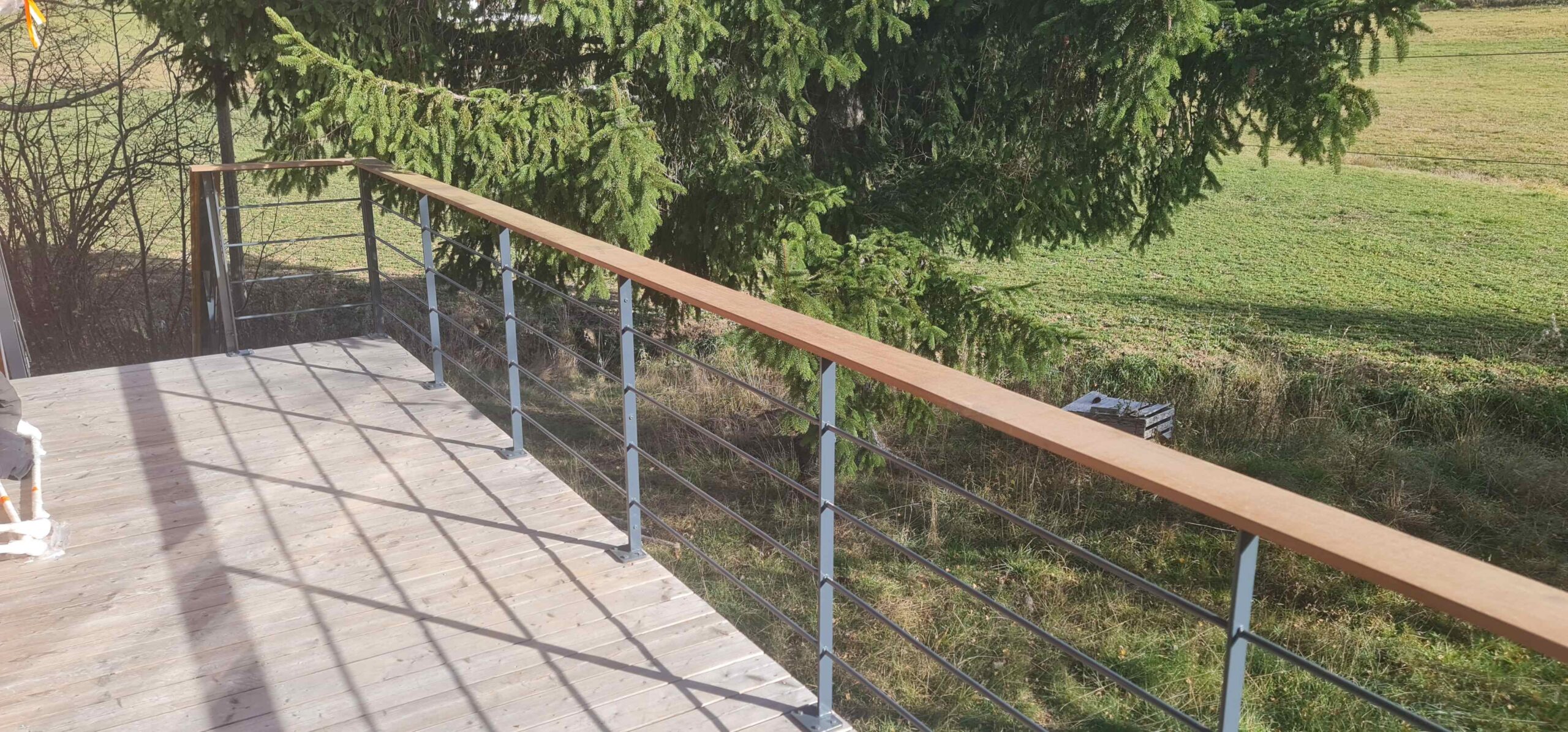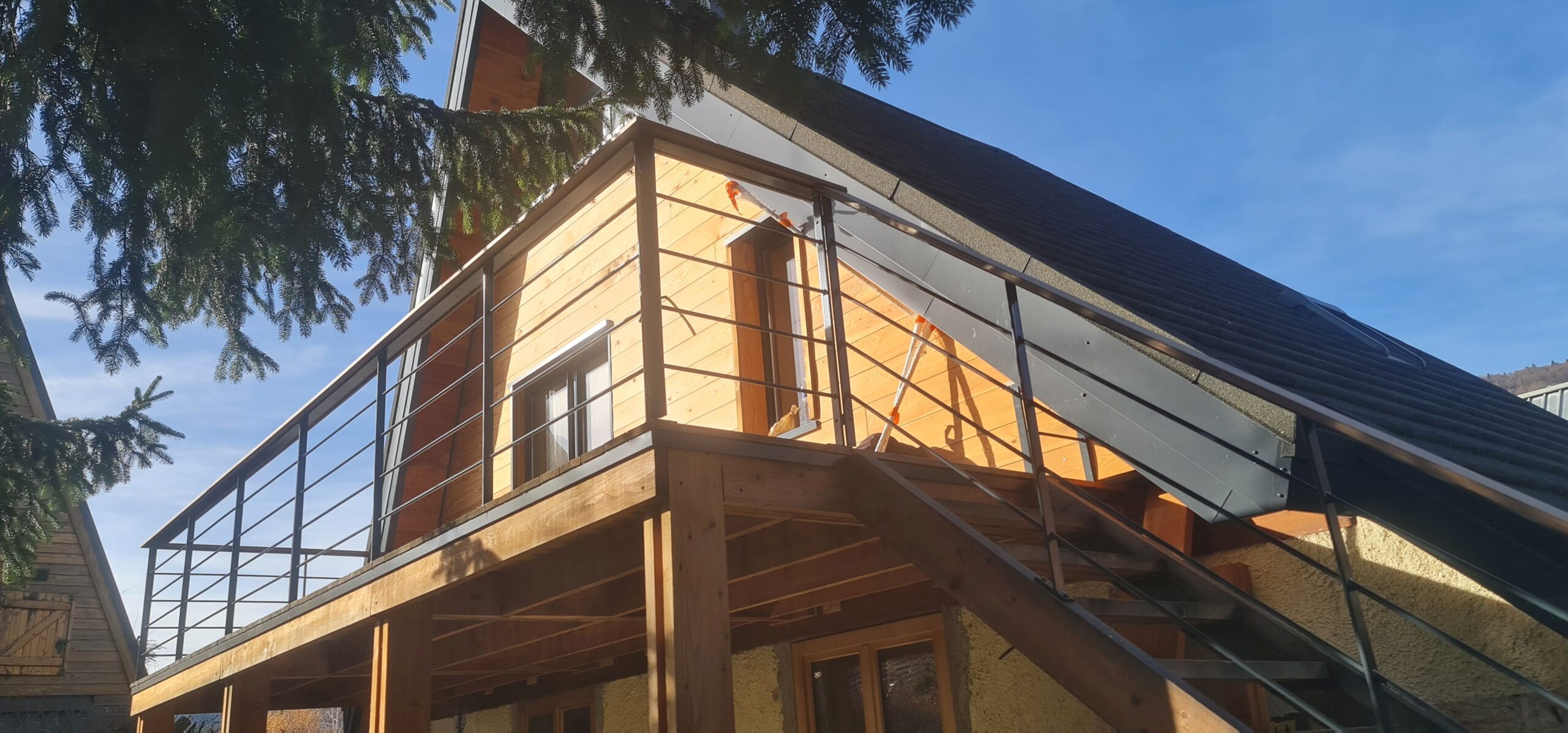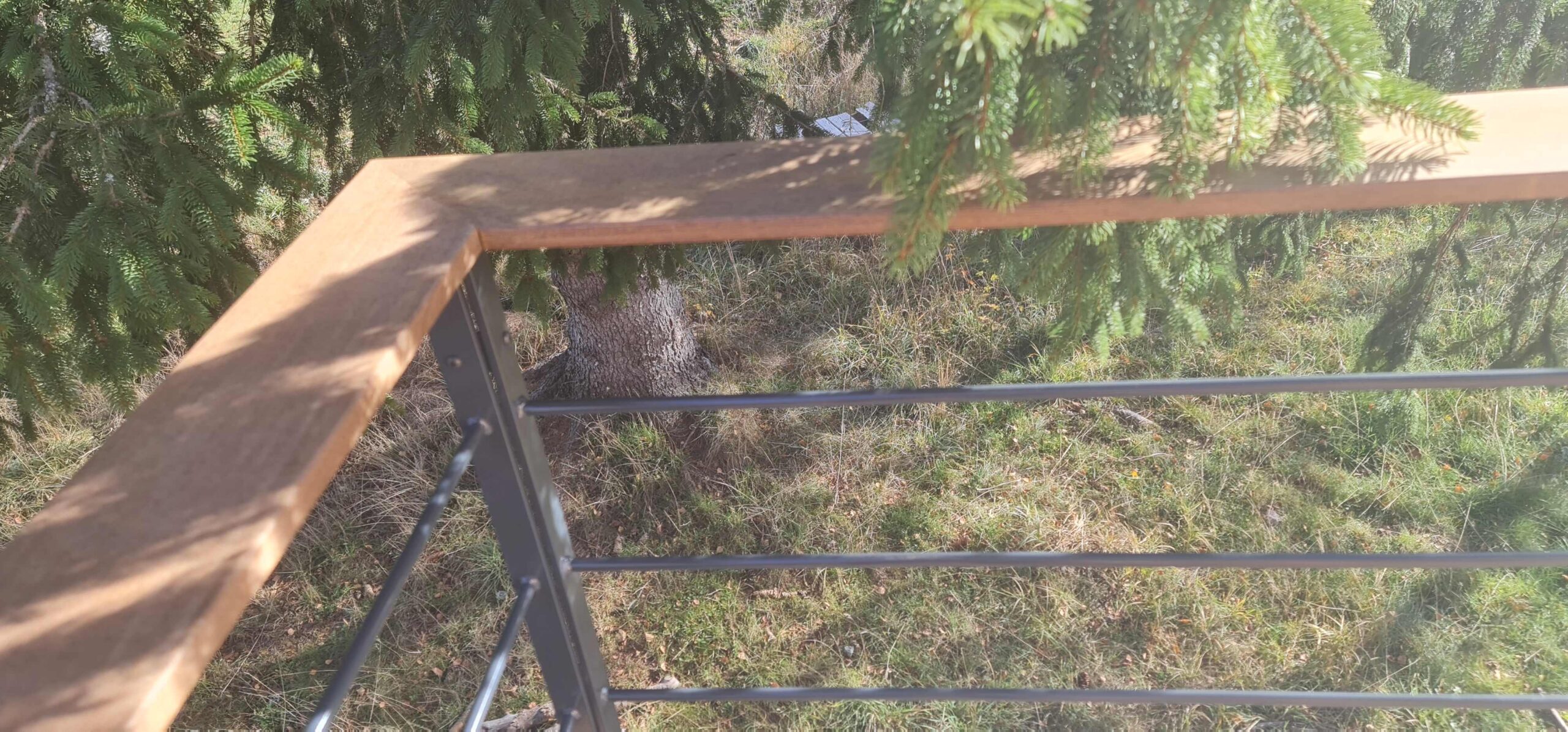 Exemple de Garde-corps acier avec une main courante en IPE posée en 2025 à LANS EN VERCORS