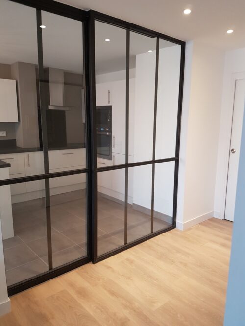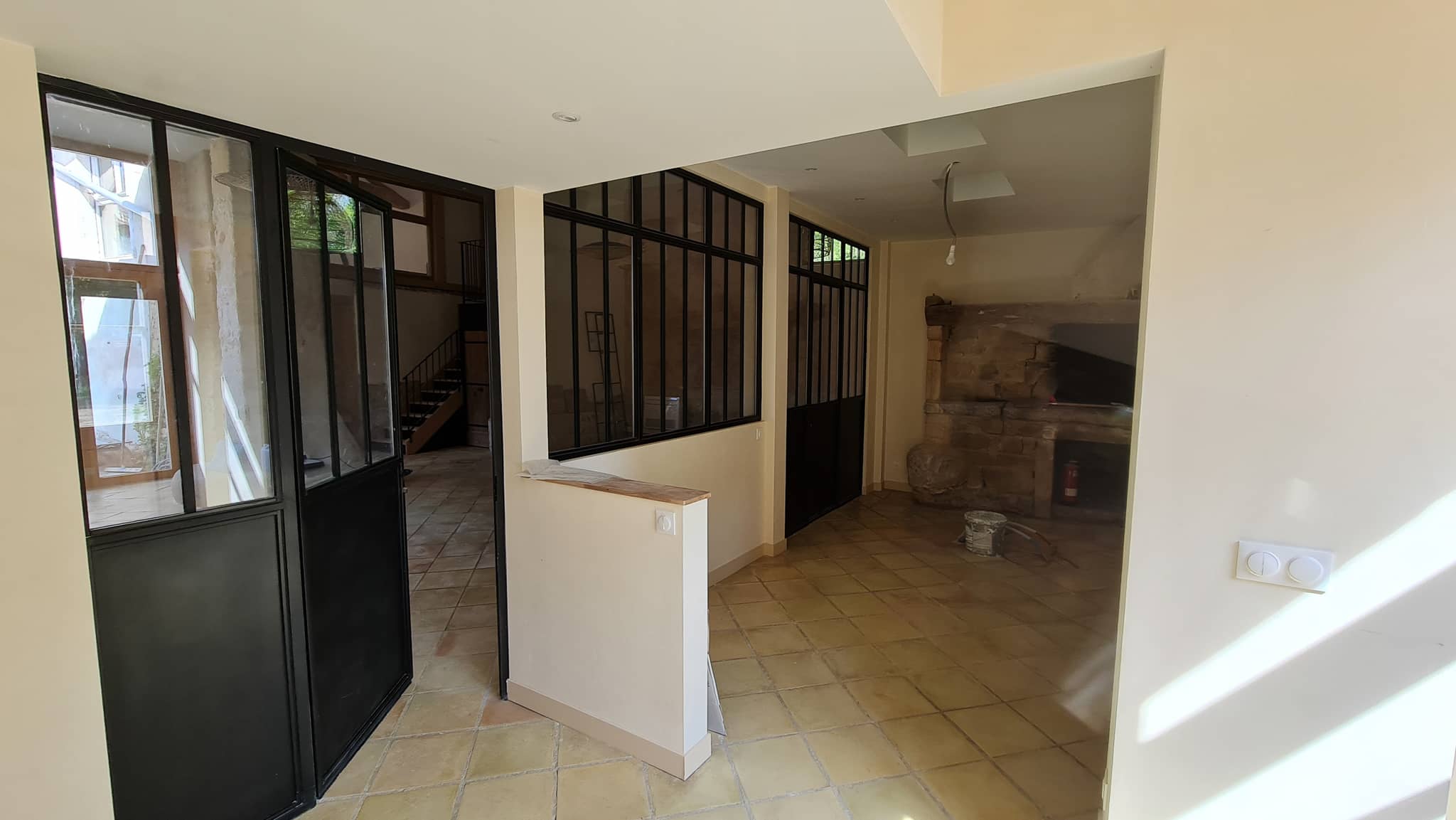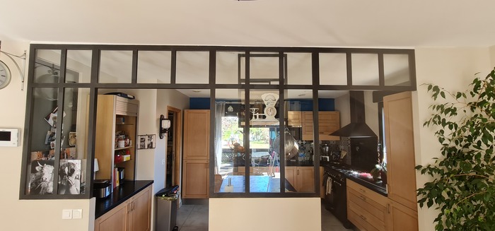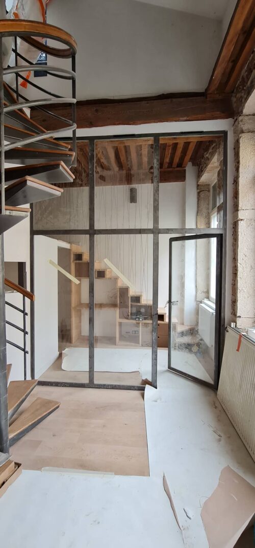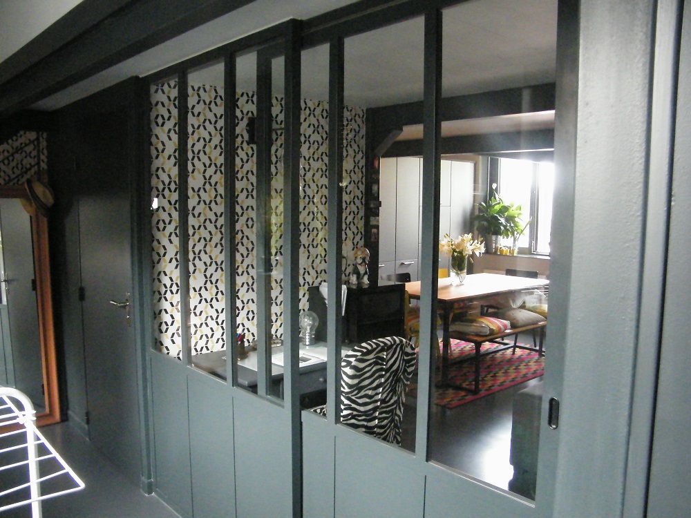 Ci-dessous : Photo de la verriere avec porte battante sur mesure réalisée sur Lyon
