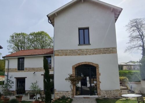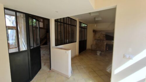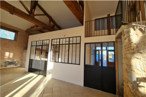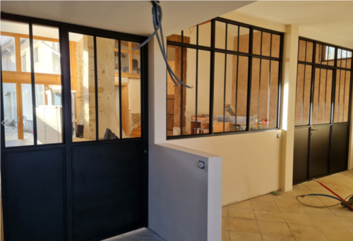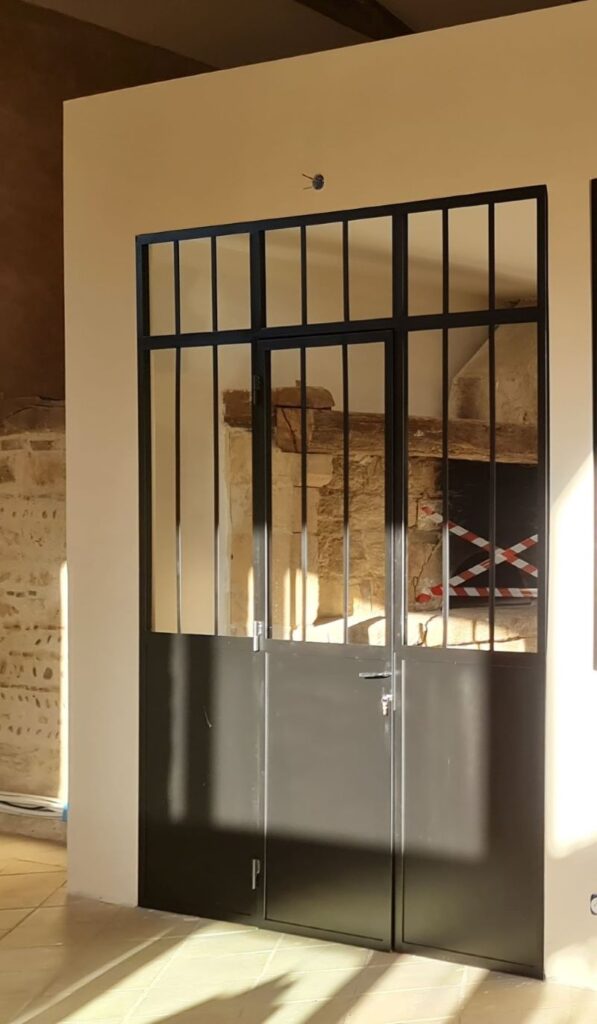Exemple de verrière acier sur mesure avec porte battante à LYON