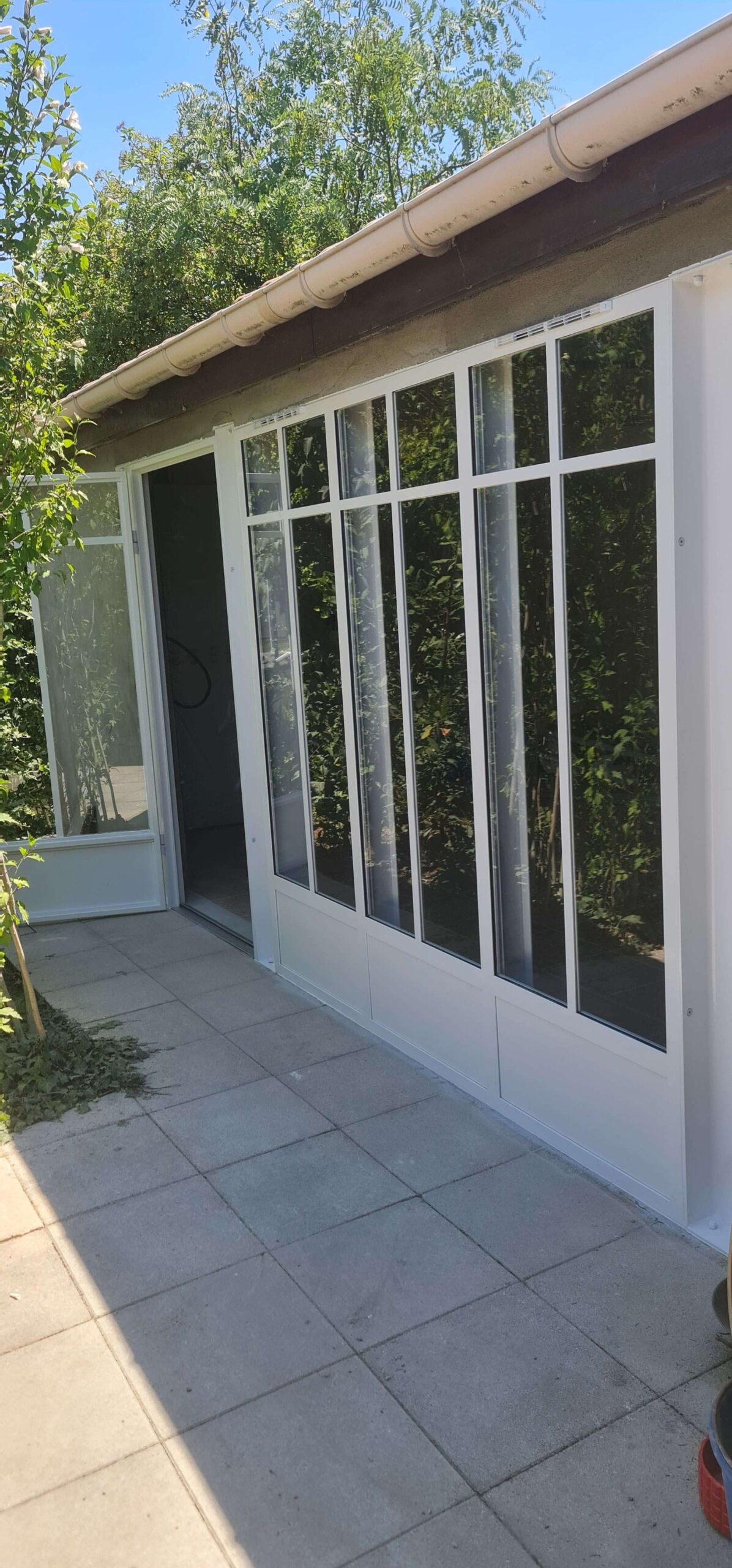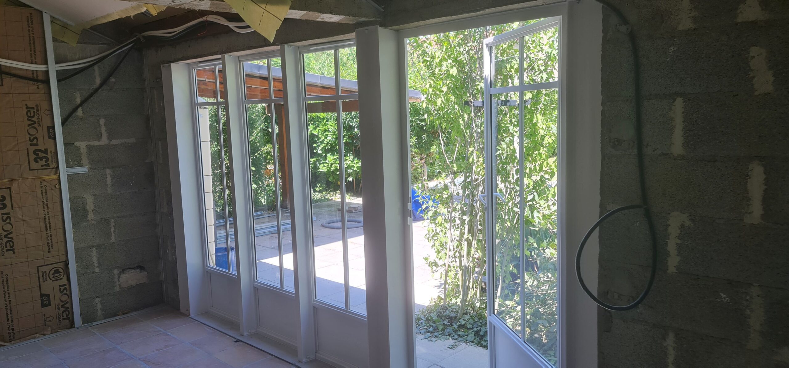 - Fermeture d'une annexe avec des verrieres + porte afin de créer un bureau